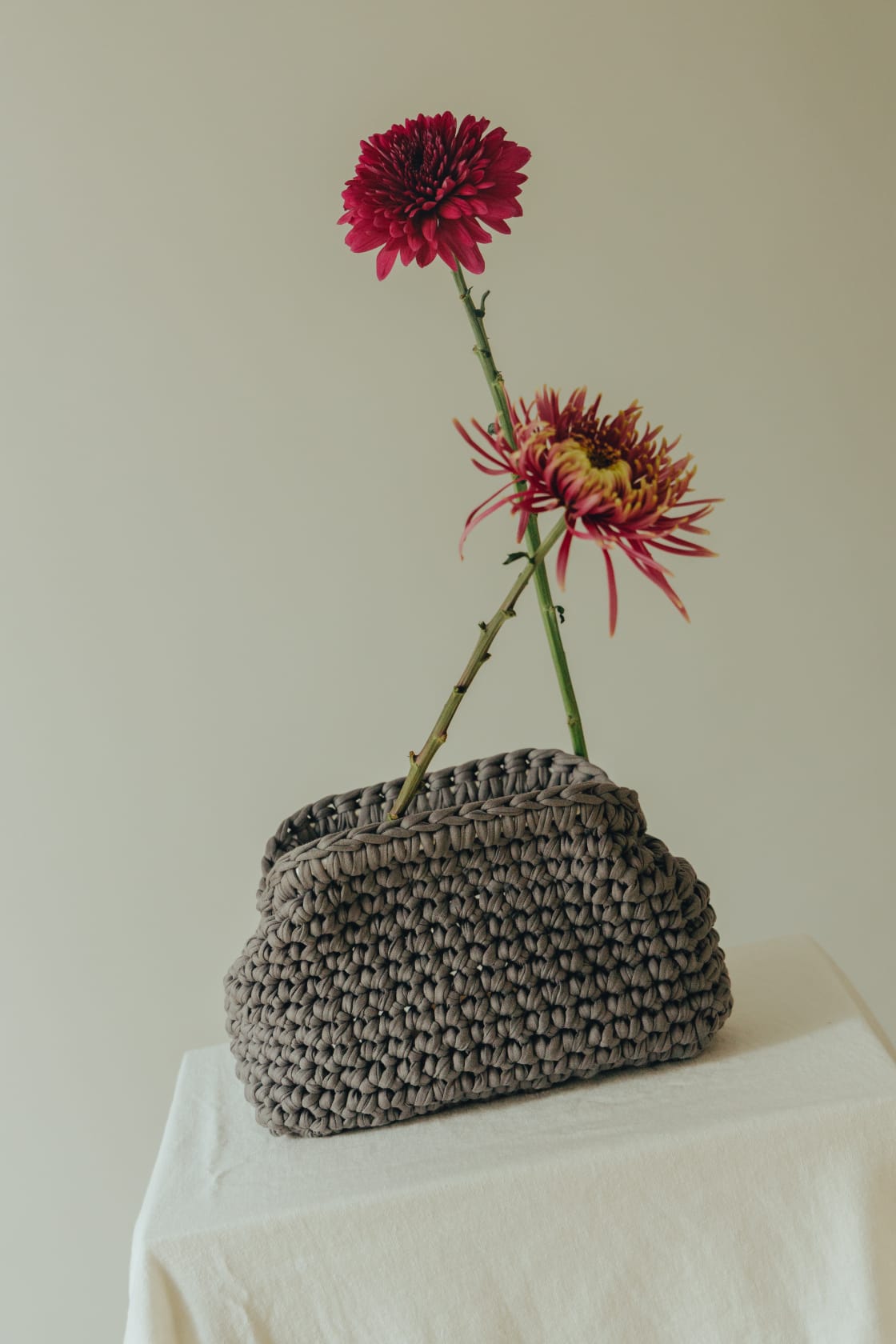 Bolso tejido a mano con técnica de ganchillo. Su estructura es flexible pero firme, con textura compacta y acabado artesanal. El diseño se presenta en color negro profundo, ideal para un uso versátil y atemporal.